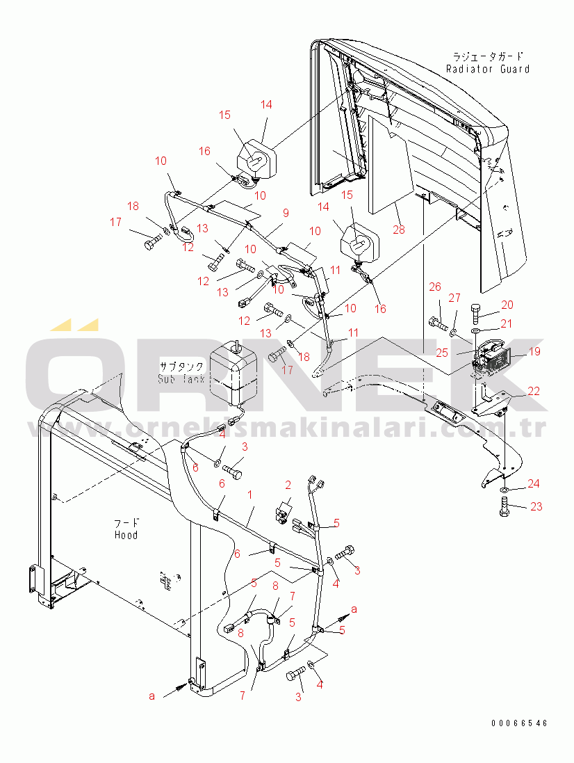 HOOD (RADIATOR GUARD WIRING HARNESS, WORK LAMP AND BACK UP ALARM)