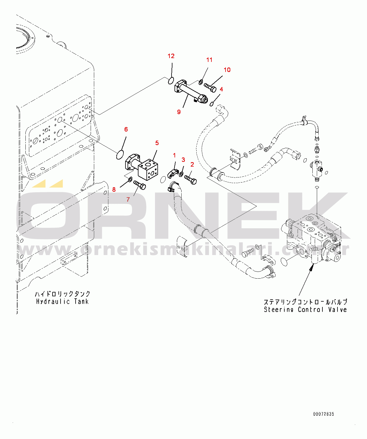 Hydraulic Tank, Steering Tank to Hydraulic Tank Return Piping (#65021-) |