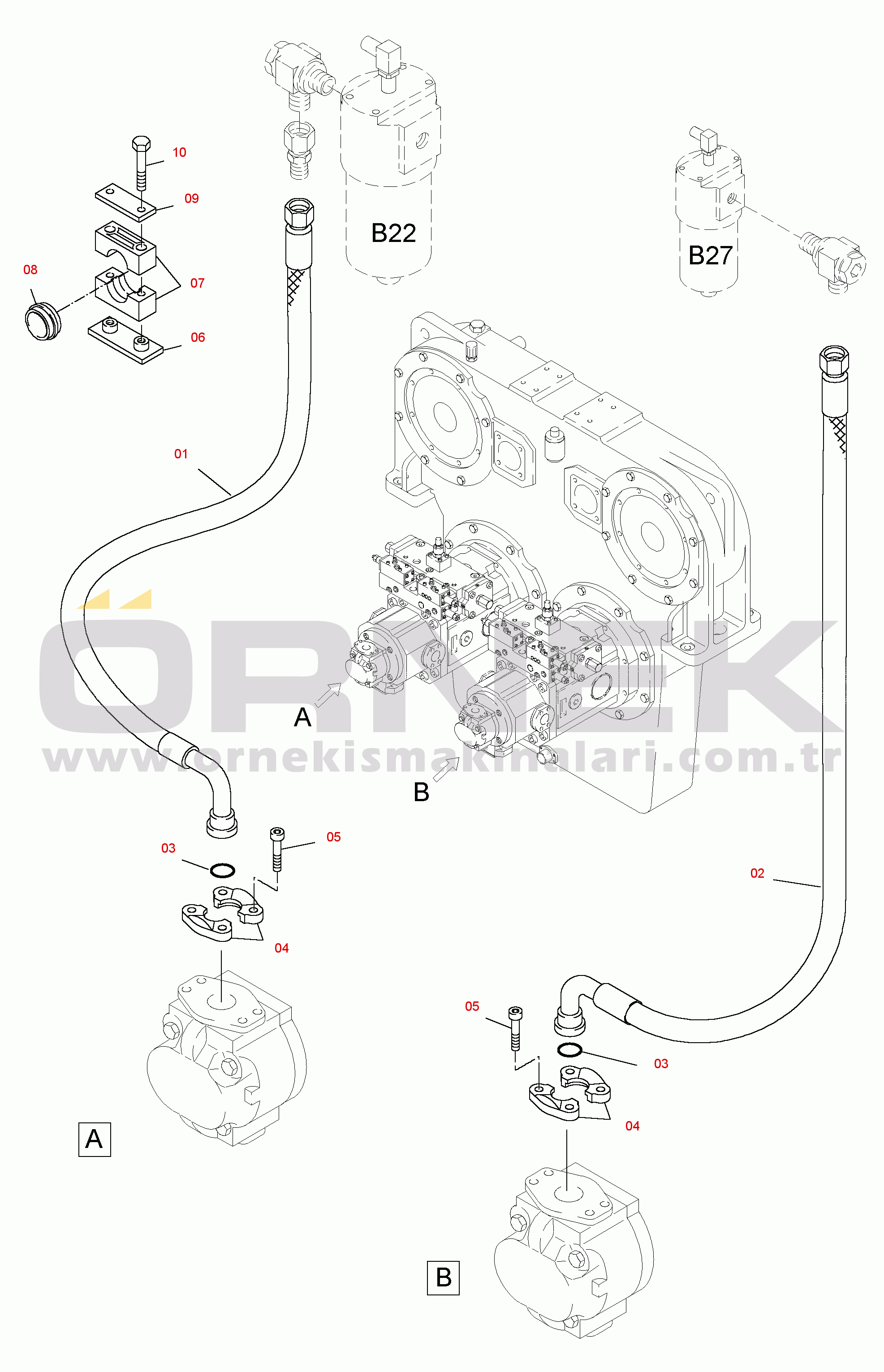 Pressure lines - Gear oil and Pilot oil pump |