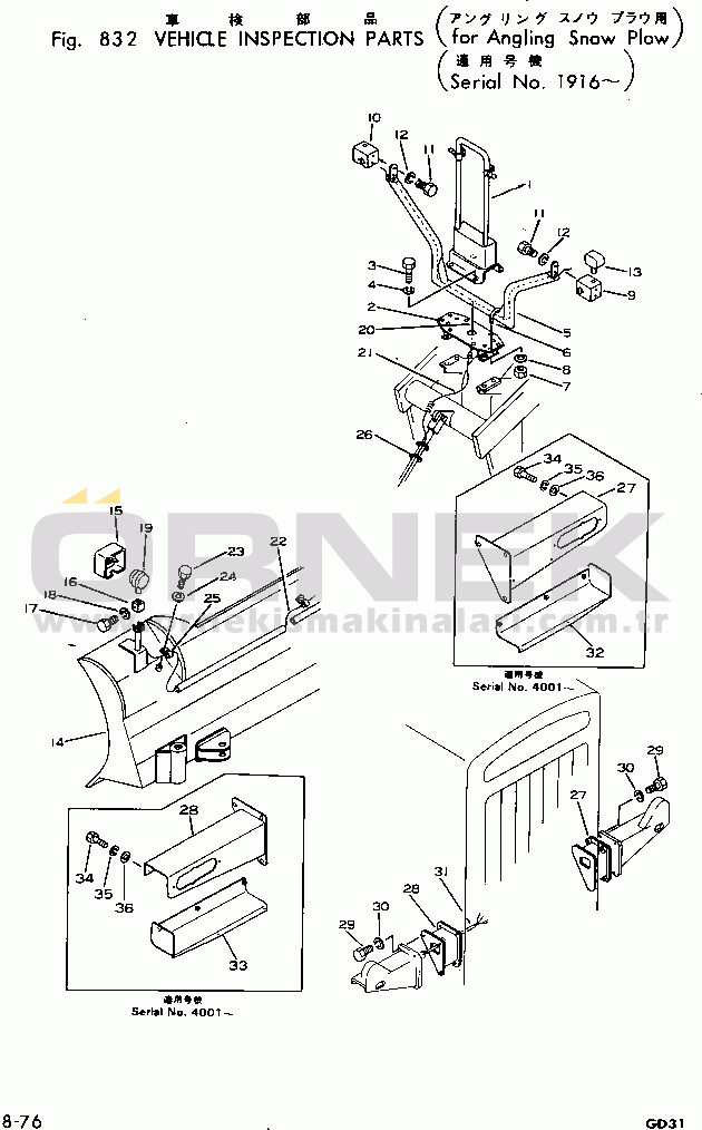 VEHICLE INSPECTION PARTS (FOR ANGLE SNOW PLOW)(#1916-) |