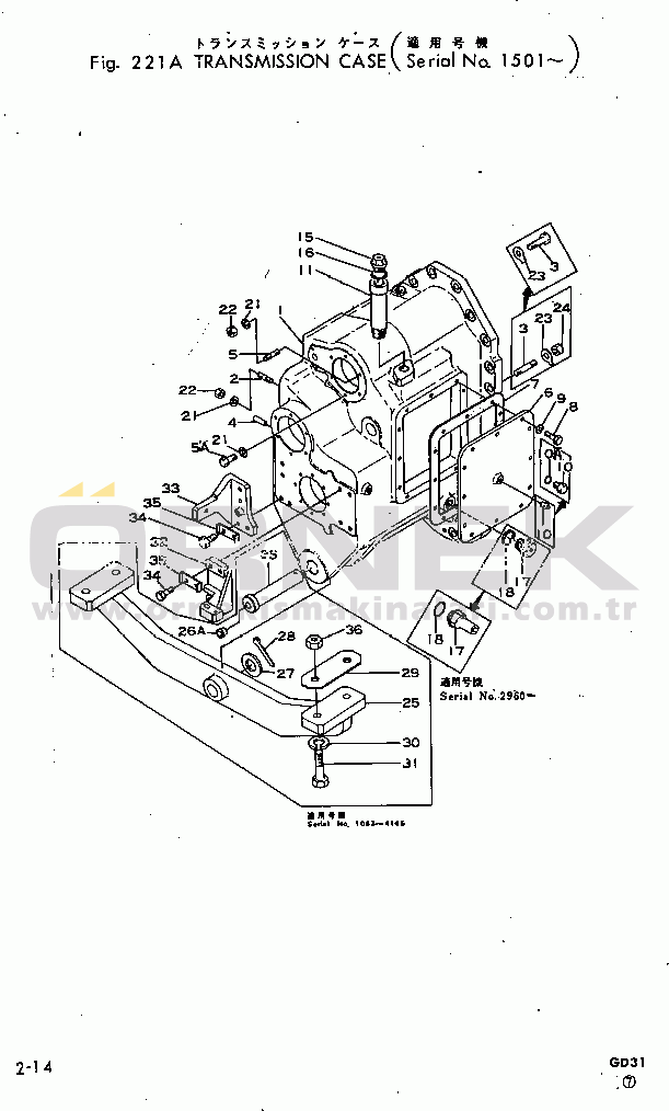 Komatsu GD31-3H S/N 1501-UP TRANSMISSION CASE Parça No : 01580-11008