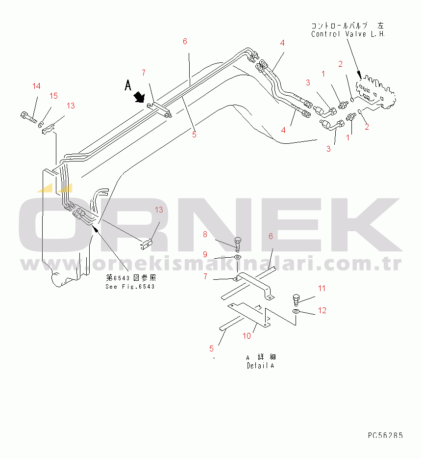 HYDRAULIC PIPING (CIRCLE REVOLUTION MOTOR LINE) (1/2)(WITH CLUTCHTYPE CIRCLE REVERSE GEAR) |