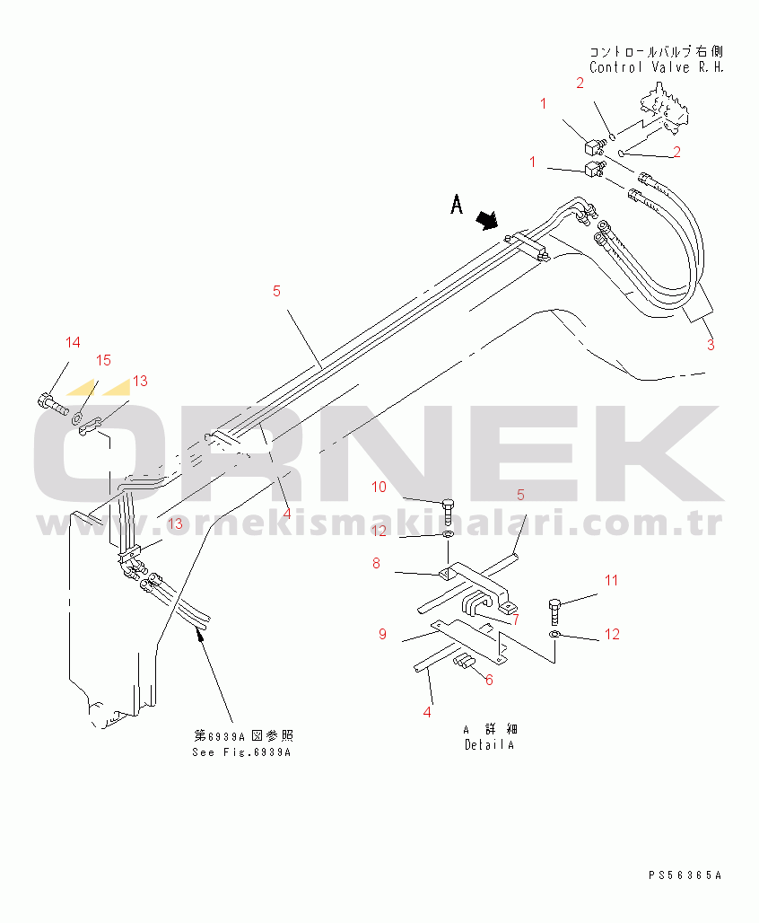 HYDRAULIC PIPING (BLADE SIDE SHIFT CYLINDER LINE) (1/2) (WITH SHOCK RELEASE BLADE)(#4501-) |