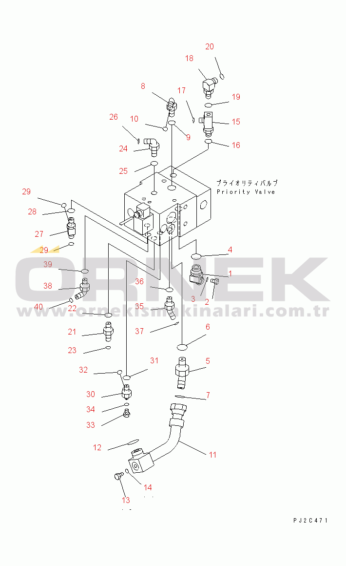 HYDRAULIC PIPING (CONNECTOR¤ FOR PRIORITY VALVE¤ 1/2)(#51001-)