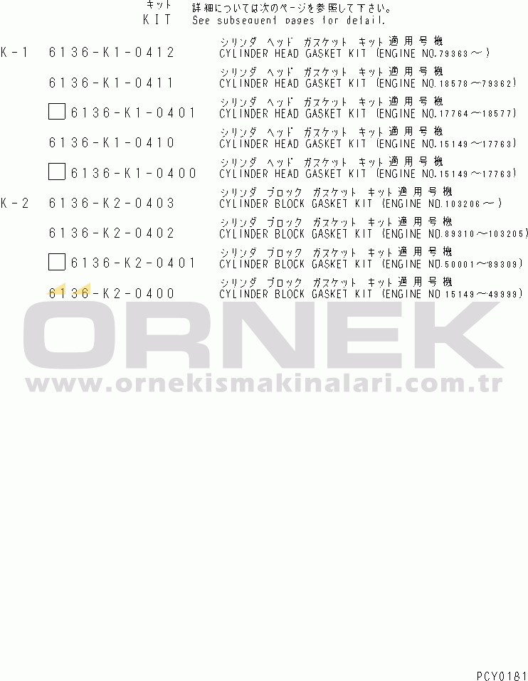 GASKET KIT,CYLINDER BLOCK |