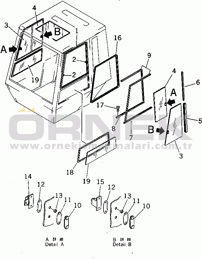 STEEL CAB (WITH ROOF DOOR TYPE) (5/6) (B-TYPE) (EXCEPT JAPAN)